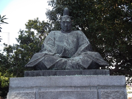 隆景広場の「小早川隆景」像の前でちょっと記念撮影。