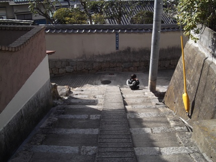 ↑「阿房坂」と「大島神社参道」が交わる場所で座り込みをする息子の写真(笑)。
