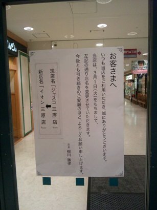 「ジャスコ三原店」が「イオン三原店」になります!!