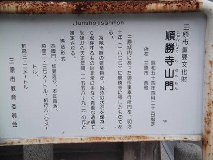 順勝寺は三原城から移築された門が有名。